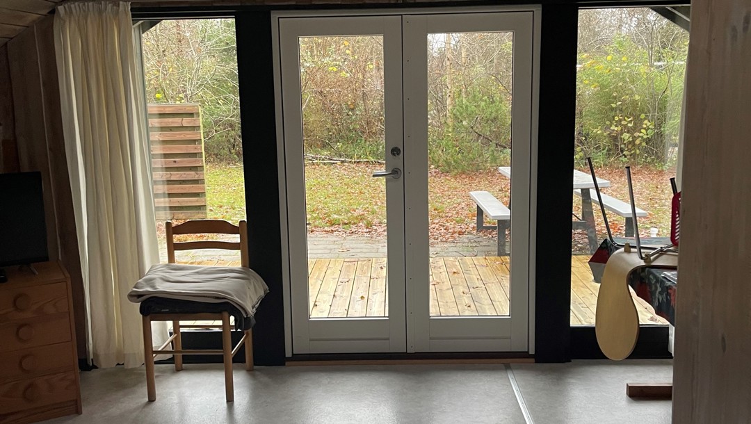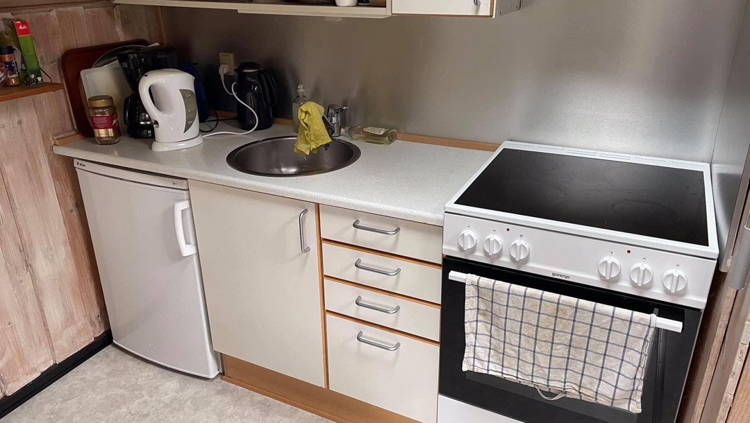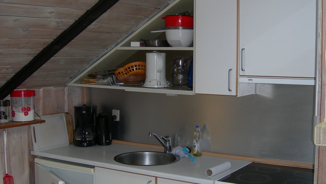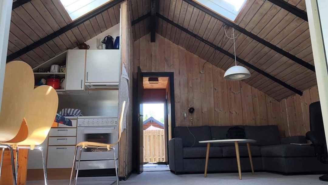 I stuen er der en sofa med chaiselong, som kan slås ud, og derved er der yderligere to sovepladser. Husene har veludstyrede køkkener med spisebord og seks stole, samt køleskab med et lille fryserum, kaffemaskine, komfur og elkedel.